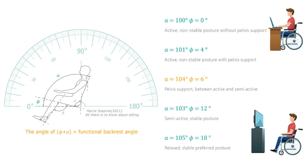 The seat angle determines how stable the user’s sitting posture is in the wheelchair.